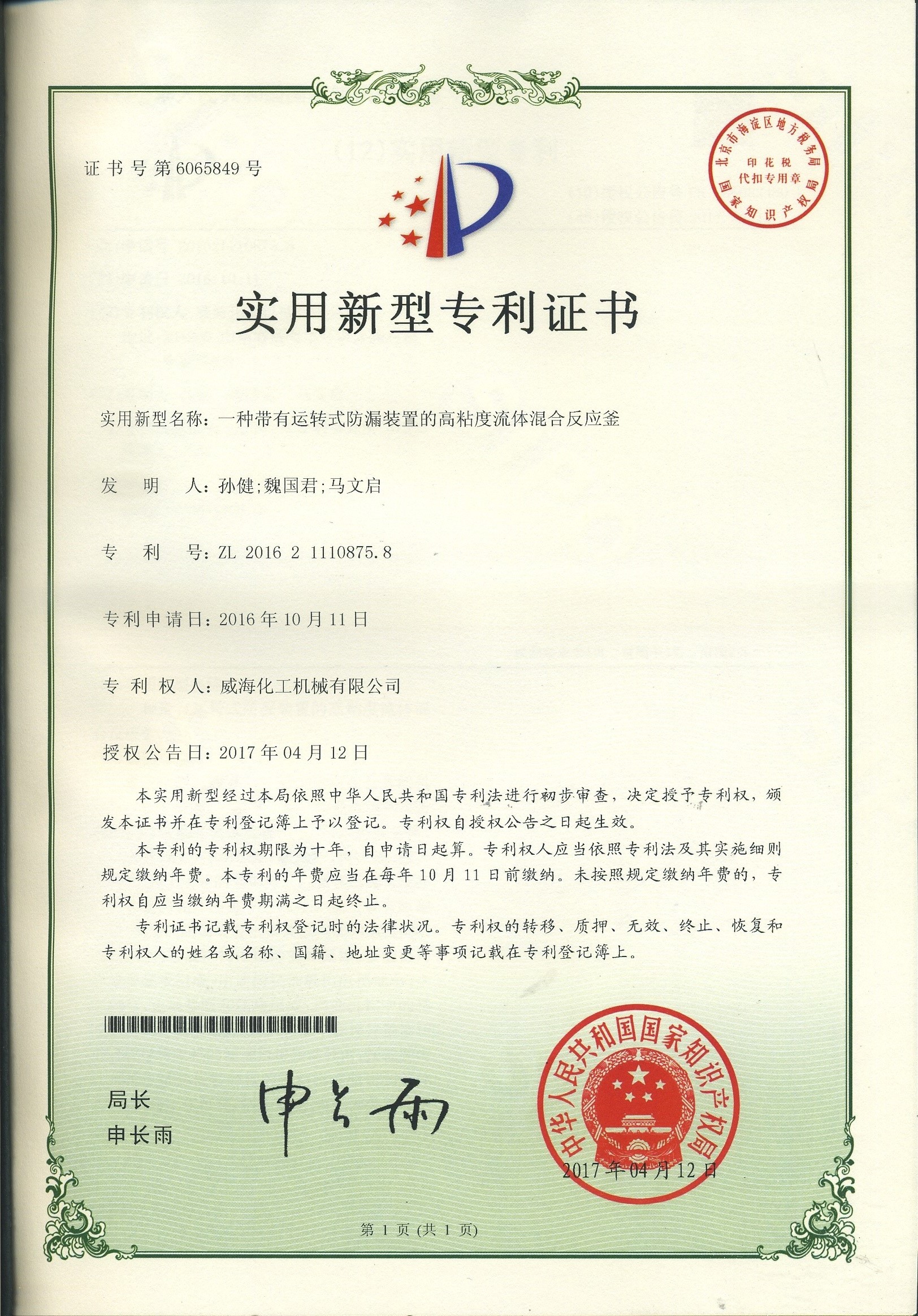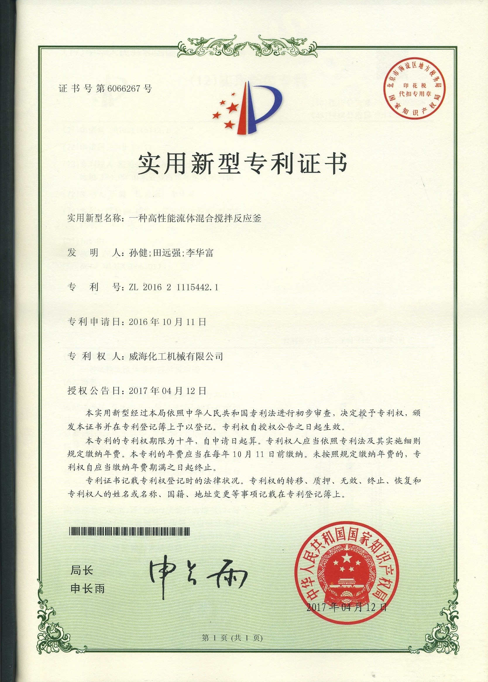 公司建有磁力驅動測試試驗室、攪拌模擬試驗室、反應釜流體混合攪拌重點實驗室等,科研力量雄厚。截至2024年,公司共承擔近280項自主/合作開發(fā)任務,先后承擔省級新產品開發(fā)任務25項,其中23項產品已達到國內水平。獲得各類省、市級技術創(chuàng)新獎30余項;參與起草、修訂標準共8項,GB/T30098-2013實驗室用磁力驅動反應釜標準、HG/T3648-2011磁力驅動反應釜標準、GB/T29254-2012實驗室反應釜用控制器標準、NB/T47002.1~47002.4-2019壓力容器用復合板;已獲得授權專利95項,其中發(fā)明專利19項,實用新型專利69項,外觀專利7項;擁有專有技術和核心技術40余項。
