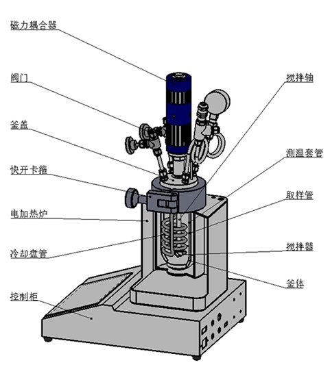 產(chǎn)品功能和特點(diǎn):臺(tái)式,機(jī)電一體化設(shè)計(jì),主體快開(kāi)設(shè)計(jì),開(kāi)閉釜操作方便、快捷,高扭矩磁力傳動(dòng),配優(yōu)選電機(jī),提升運(yùn)行穩(wěn)定性。攪拌支持定制槳葉類型,適配多樣化攪拌需求;加熱爐傳熱快,均熱效果好,效率可調(diào);真彩色觸控屏,模塊化顯示,控制界面操作簡(jiǎn)潔;支持遠(yuǎn)程控制,具備RS485通訊口,配上位機(jī)軟件,可顯示工作時(shí)間/溫度/轉(zhuǎn)速/壓力,PID自整定控溫精準(zhǔn);具備安全連鎖功能,超溫超壓報(bào)警;具備數(shù)據(jù)采集,記錄以及報(bào)表導(dǎo)出功能;支持選配加料、計(jì)量、取樣、冷凝等擴(kuò)展功能。